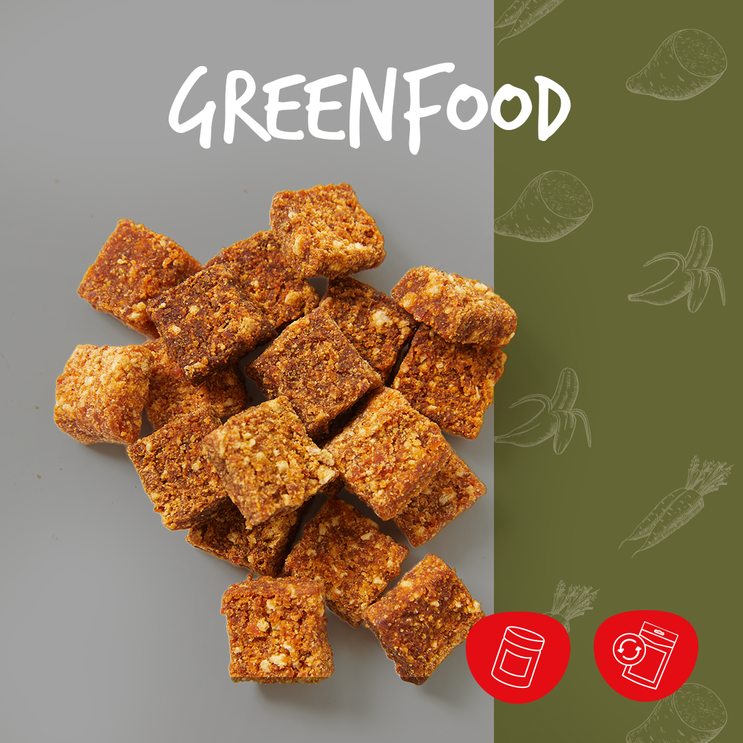 The cadocare dog treats GREENFOOD Goodies Veggie are snacks with responsibility! In this meat-free version, we rely on healthy sweet potato in combination with carrot and banana. The vegan snack is the ideal complement to a meat-based diet - especially in combination with raw meat feeding (BARF). Our GREENFOOD Goodies Veggie convince with their extraordinary taste, are at the same time low fat and reduce the ecological footprint. Snack for Future! A gift to our environment and our four-legged friends!